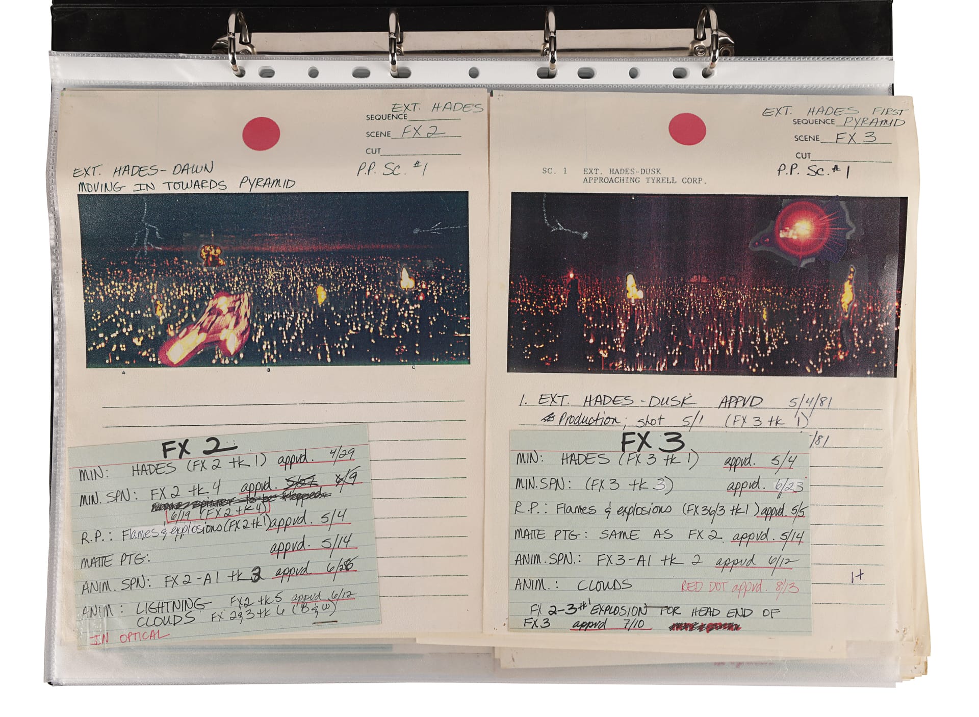 The opening sequence of Blade Runner (1982) famously depicts oil and gas flares erupting across a dystopian cityscape. I stumbled upon an auction lot of the film's visual effects storyboards in a 'black lever arch folder'. Their physicality is enthralling and instructive, convincing me to 1) maintain the physical archive of all my past projects, and 2) make my sci-fi film.