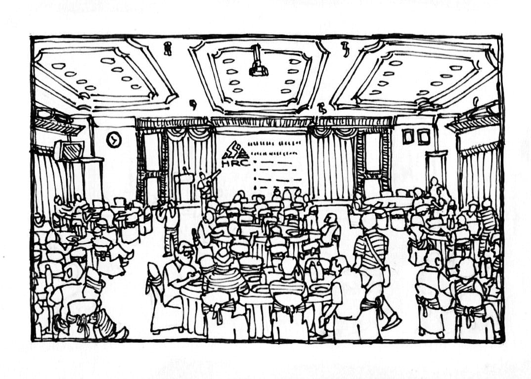 Today's signal is by Brian Khow, with drawings by Zedeck. It's a scene report about our neighbourhood's meeting with Hengyuan Refining Company's (HRC) management in November last year, which we secured only after months of direct action. These actions culminated in then Minister of Environment Nik Nazmi Nik Ahmad personally paying a visit to HRC, along with the Menteri Besar of Negeri Sembilan and Director General of the Department of Environment.