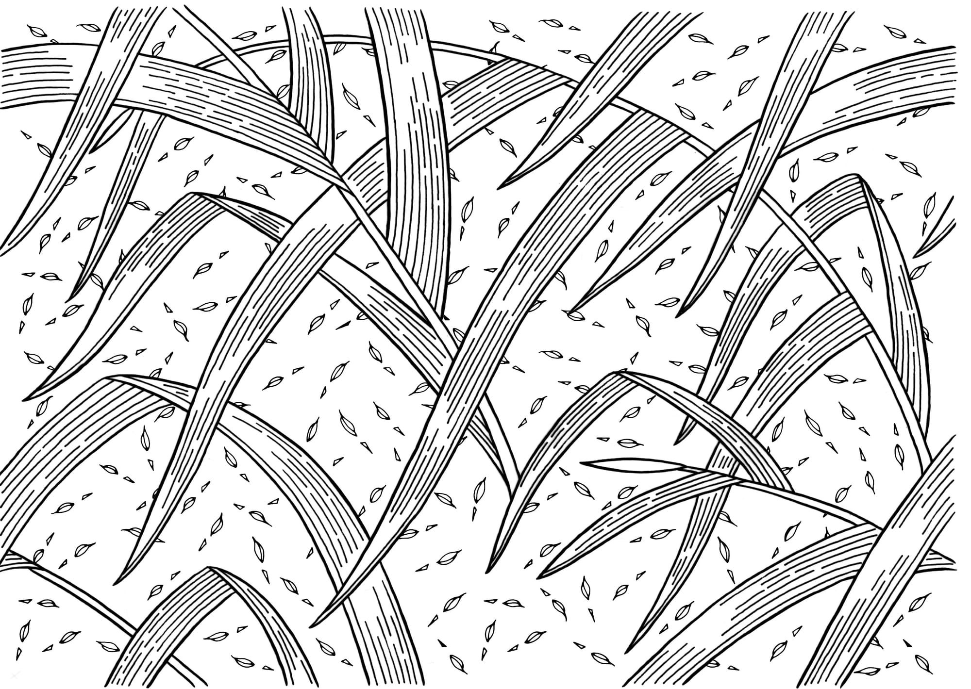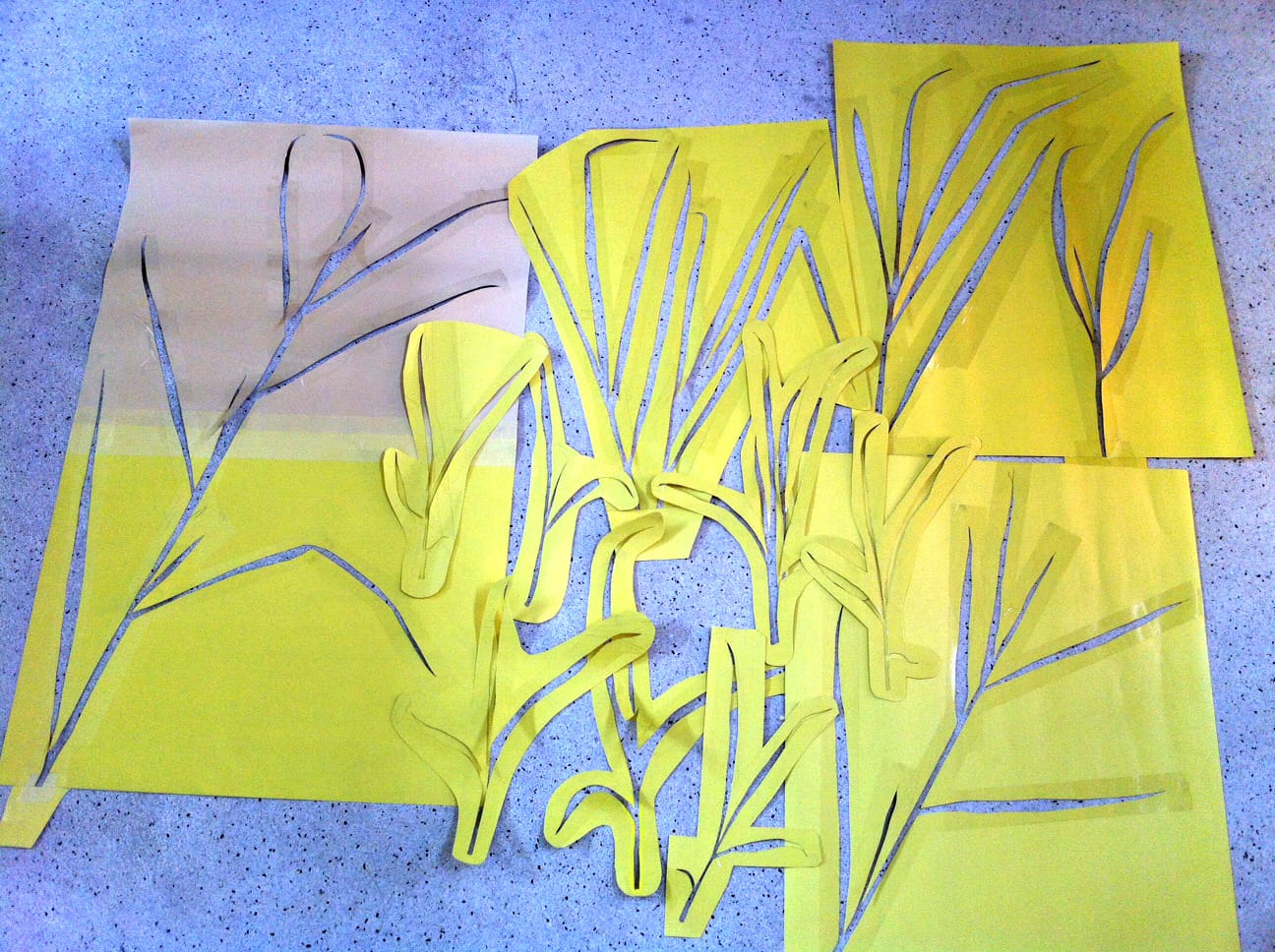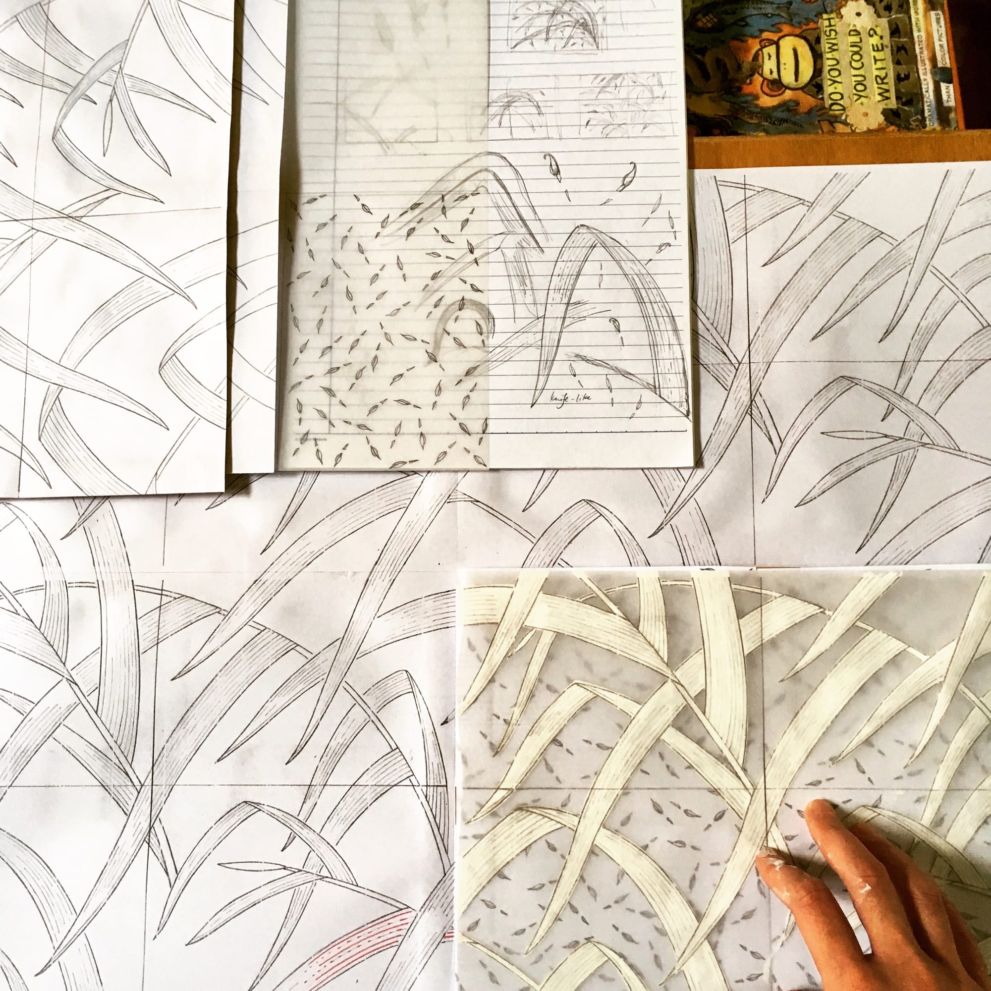 Top row: Lalang stencils, 2015 // Bottom row: Lalang repeat pattern, 2017