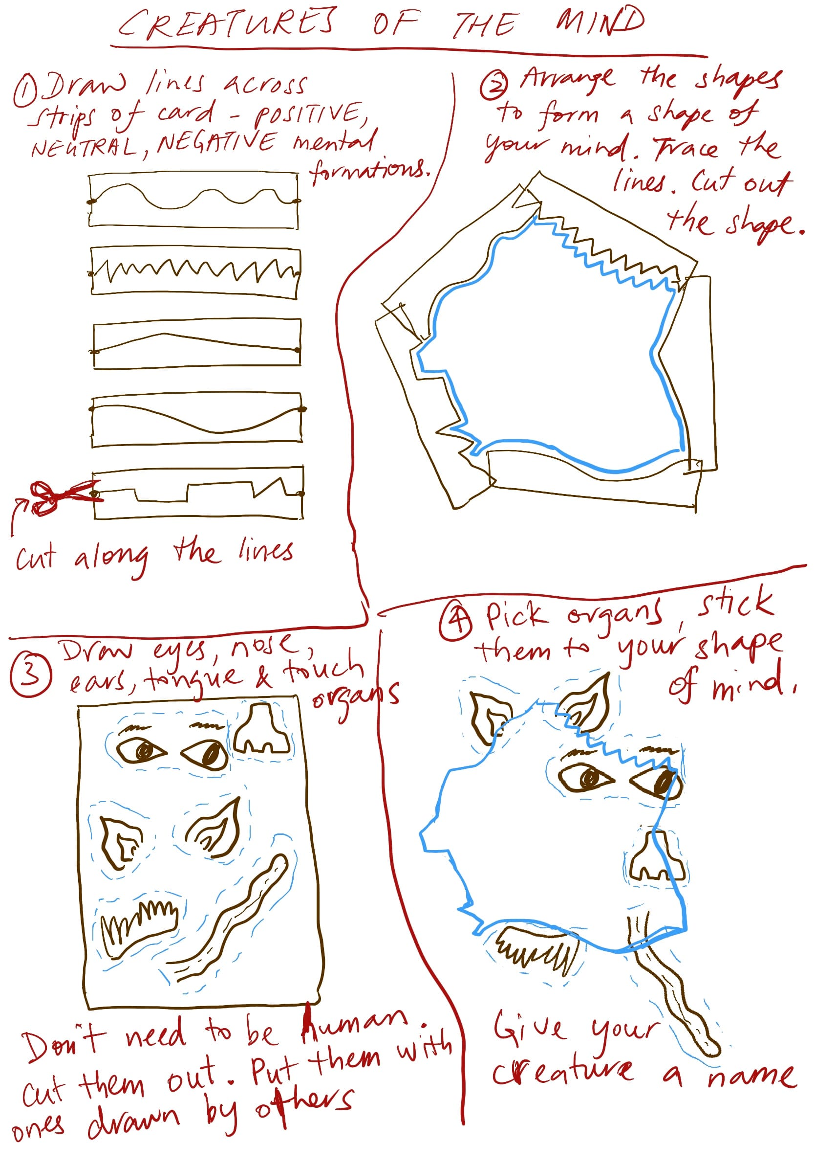 Almost done sewing the book cover art for the forthcoming Bahasa Melayu version of Life After: Oral Histories of the May 13 Incident. Also, a drawing for a workshop I'm developing called 'Creatures of the Mind, Creatures of the Land'.