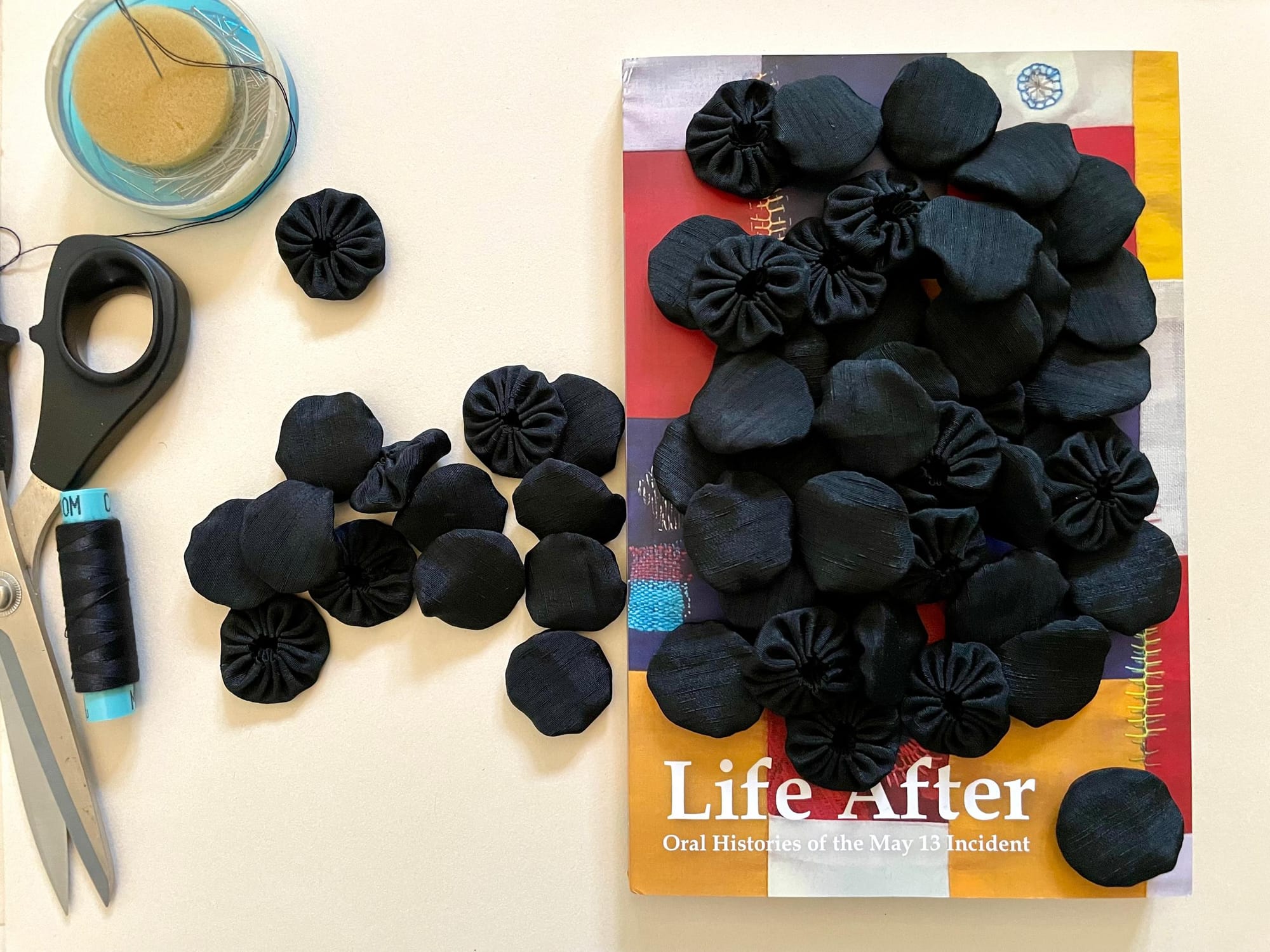 I'm working on the book cover art for the Bahasa Melayu translation of Life After: Oral Histories of the May 13 Incident. Like the visibly mended quilt I made for the English version, the new cover will be a textile piece.