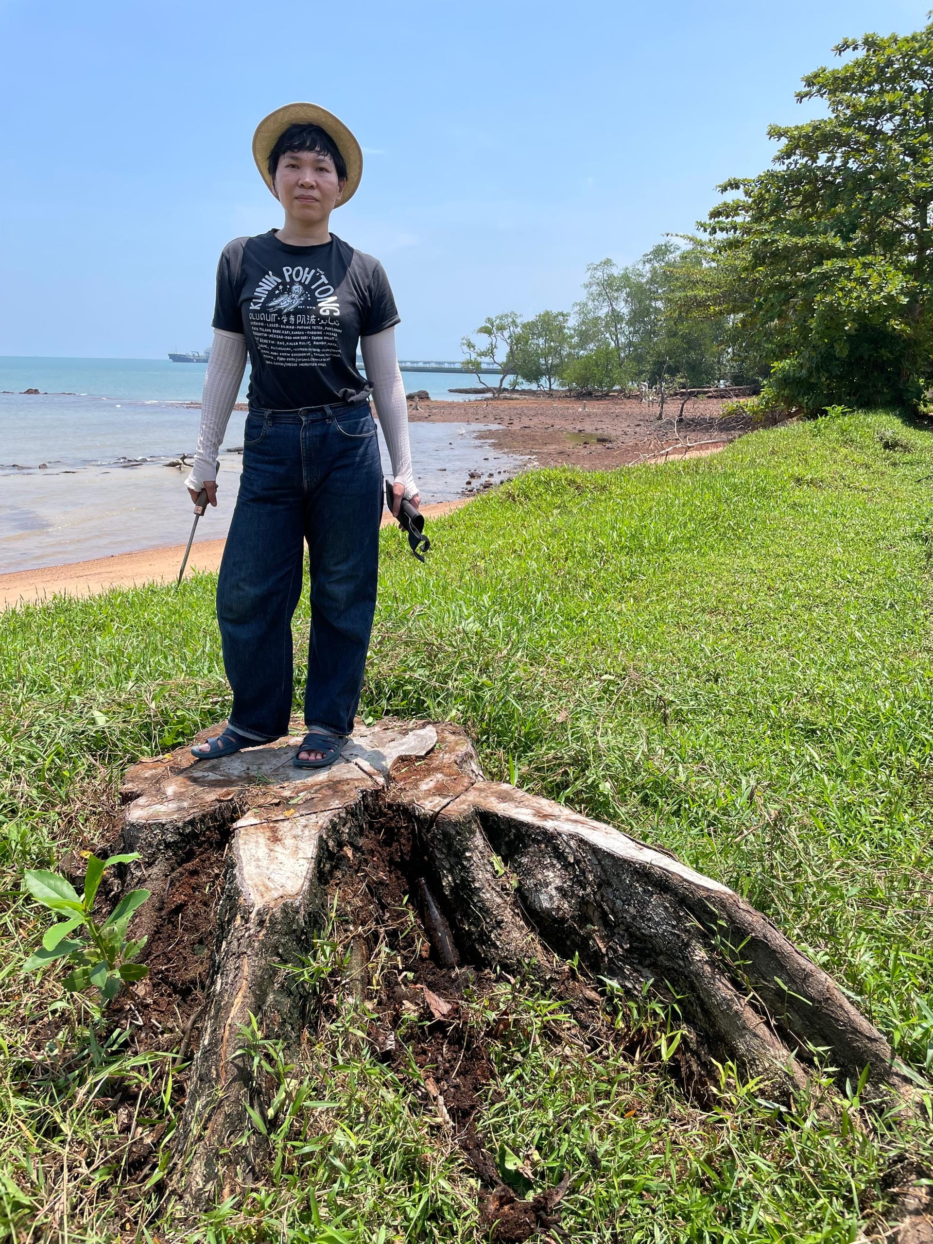 A few weeks later, the first tree's stump was already sprouting new shoots. The ground was carpeted with ketapang seedlings, their leaves spread out like butterflies in the morning sun. Deathless and defiant, First-in-Row! But at the third tree - nothing. The stump was starting to dry out. I stood on it, in the empty space. Tears and light rain disappeared into the dead wood at my feet. No luck this time, with the third tree. No more birthdays beneath her soft shadow.