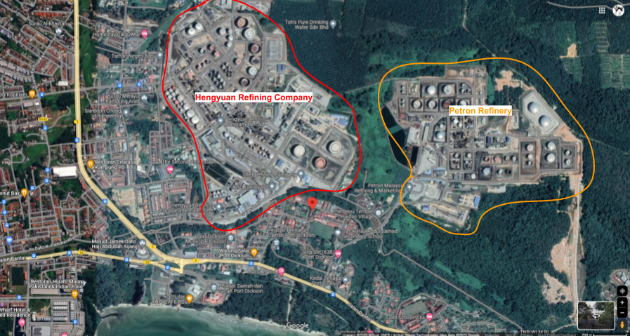 This is Hengyuan Refinery, formerly Shell, and this is Petron, formerly Esso-Mobil. We’re 200m from the fence.