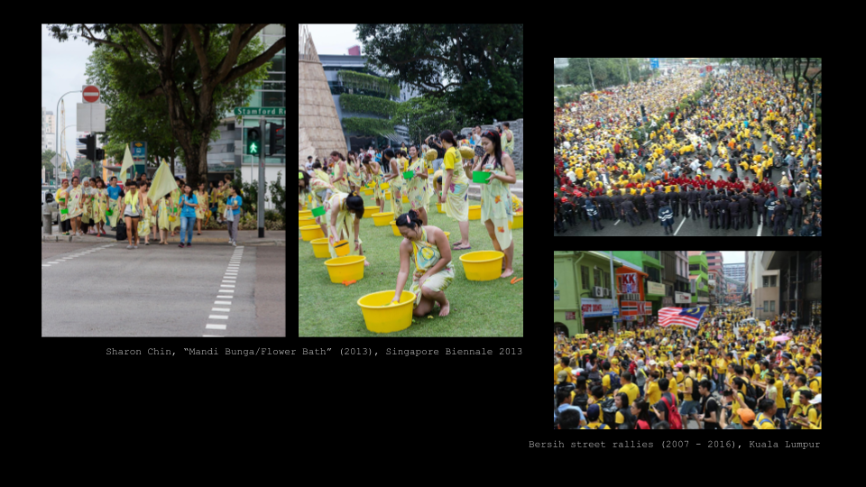 “Mandi Bunga” was a public flower bath with a hundred people - informed by Malaysia’s Bersih street protests for free and fair elections, which happened around the same time as the Arab Spring and Occupy Wall Street.