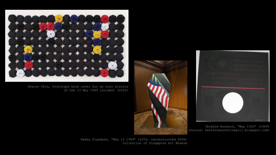 I was also thinking alongside a couple of other works: “May 13 1969” by Redza Piyadasa, on permanent display here in the Southeast Asian galleries. I make it a point to spend time with this work whenever I have the privilege of being in Singapore.