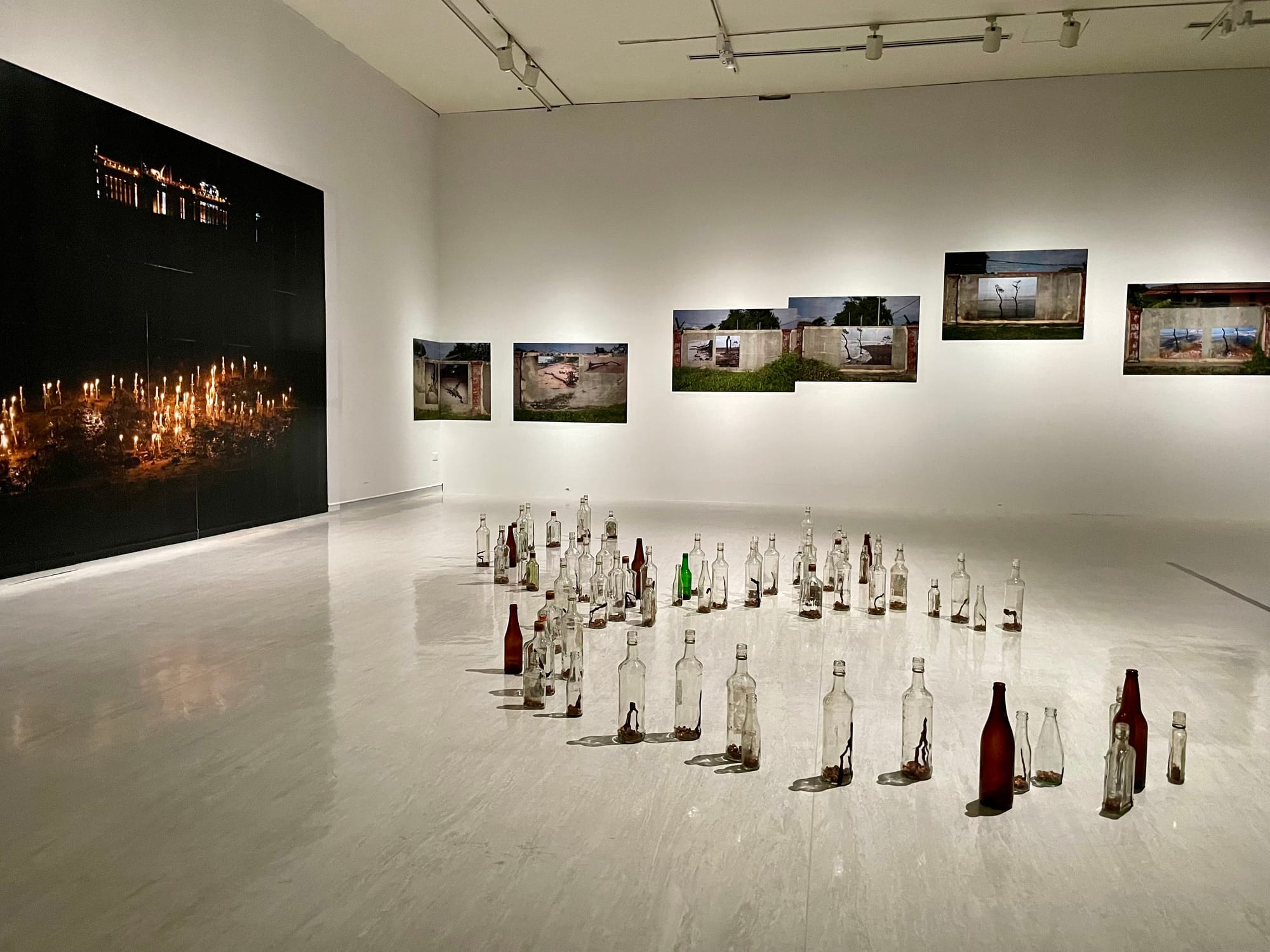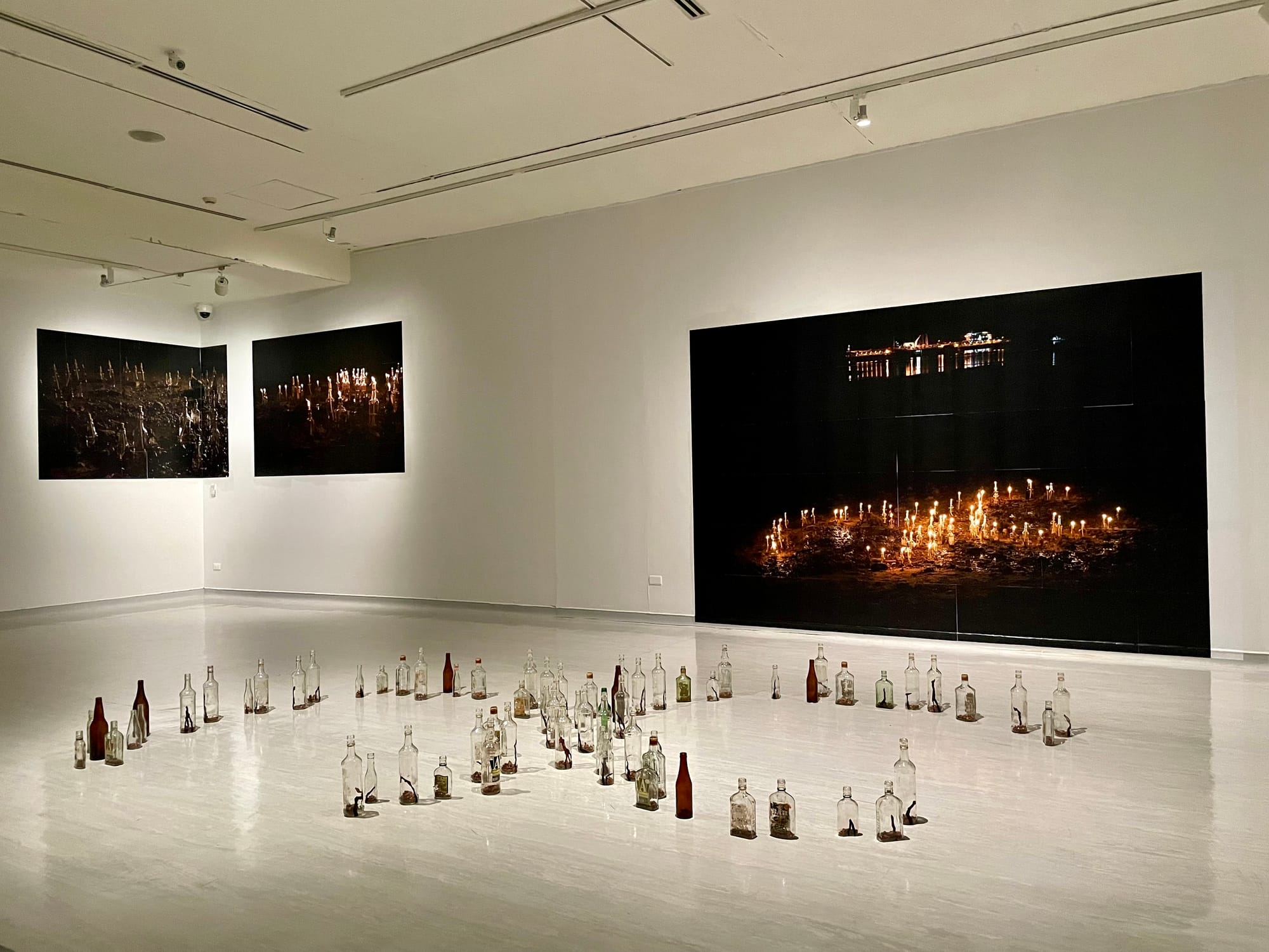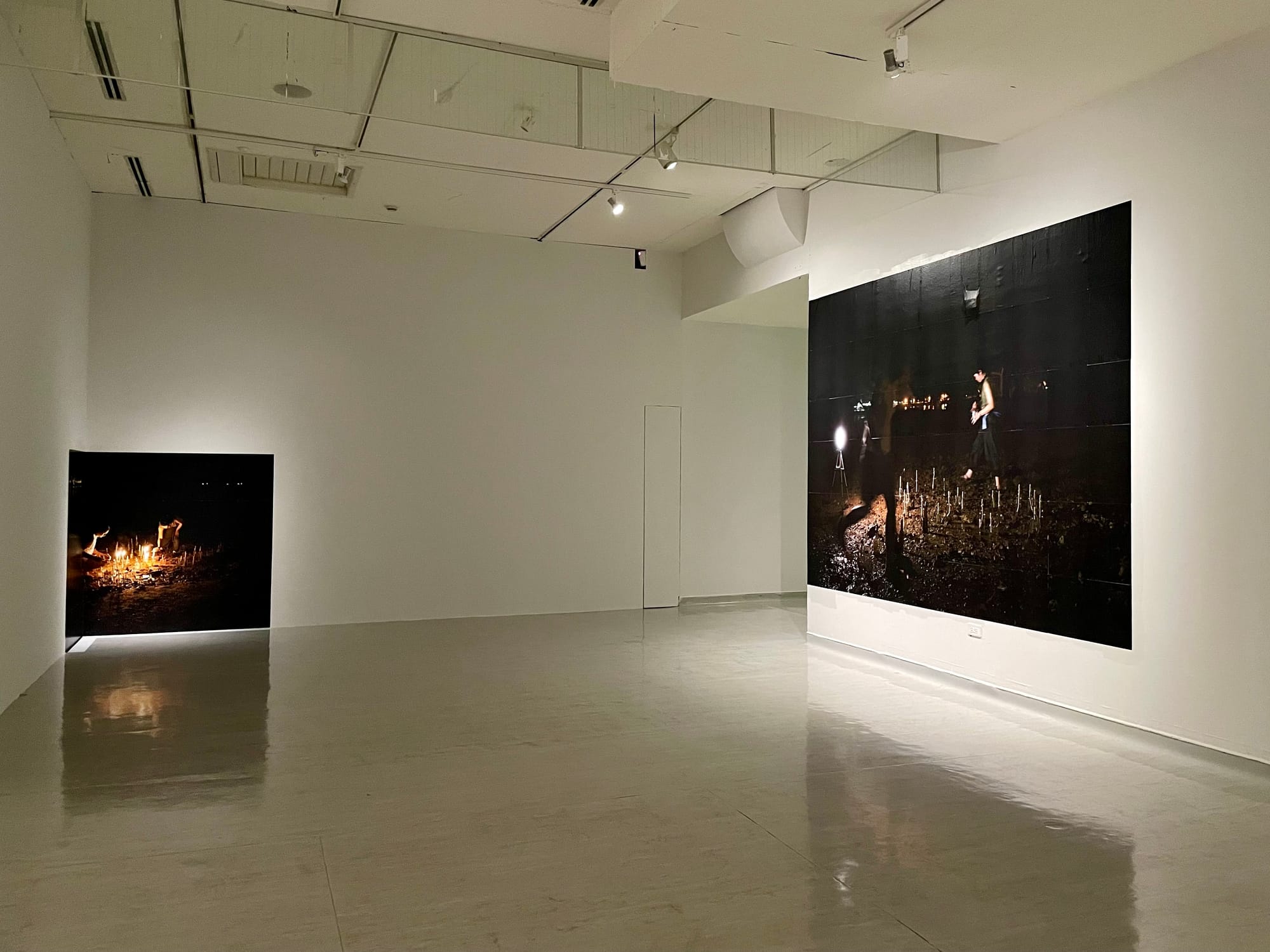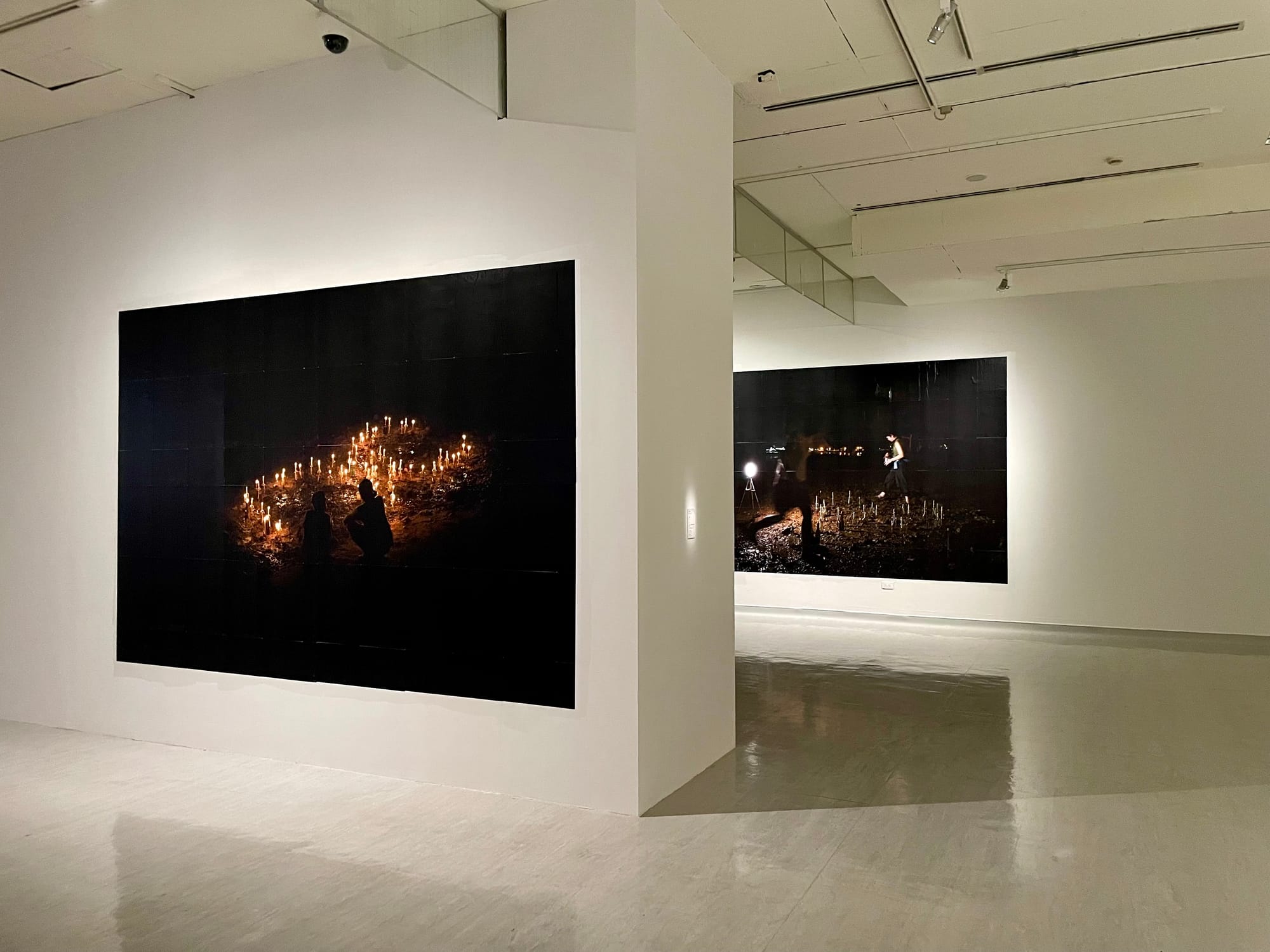 Sharon Chin, 'Portal' (installation view), 2024, performance and site-specific installation with oil lamps and wheatpasted poster images. Co-produced by Zedeck Siew, with photography by Grace Wong.