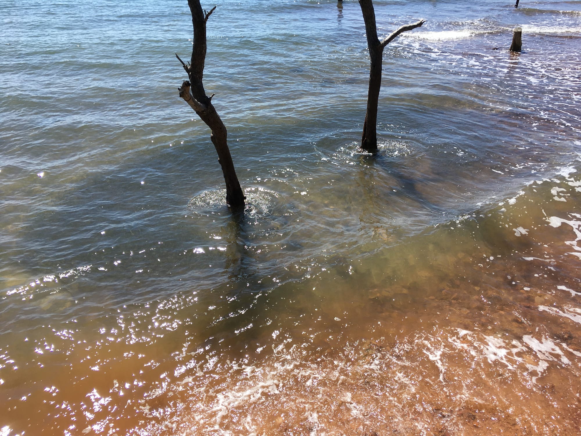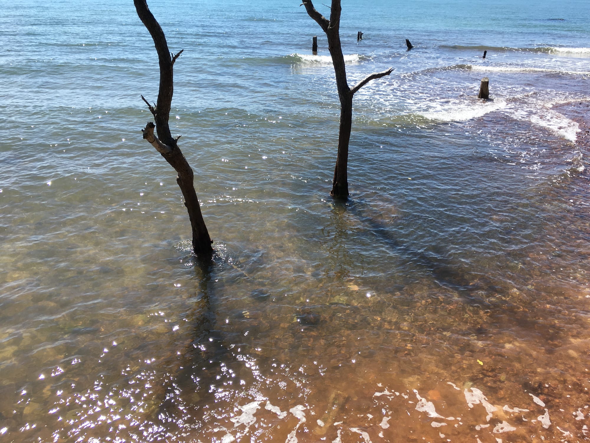 A scene unfolded with light refracting through the unusually clear water. No shadow, but a rippling body of small, silver-grey fish, dancing around the sick trees to an orchestra of waves. I'd stumbled upon some ritual performance that wrapped me in a trance, to be released only after its image settled into a fold of my brain like a gemstone.