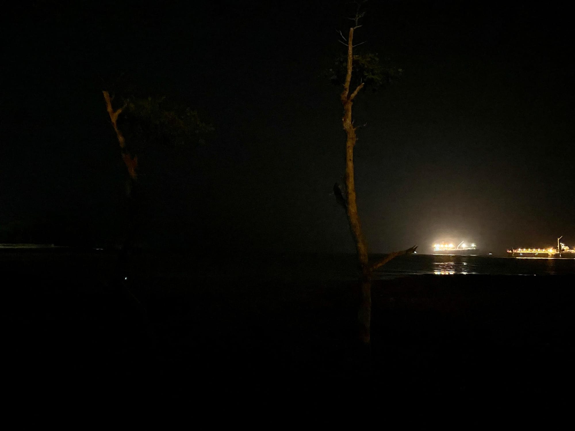 From a distance, I saw a strange shadow around the roots of the two trees. It moved with the tide. At first I thought it was shadows cast by their crowns, but that was impossible - the pair of trees weren't thriving; there were hardly any leaves on them.