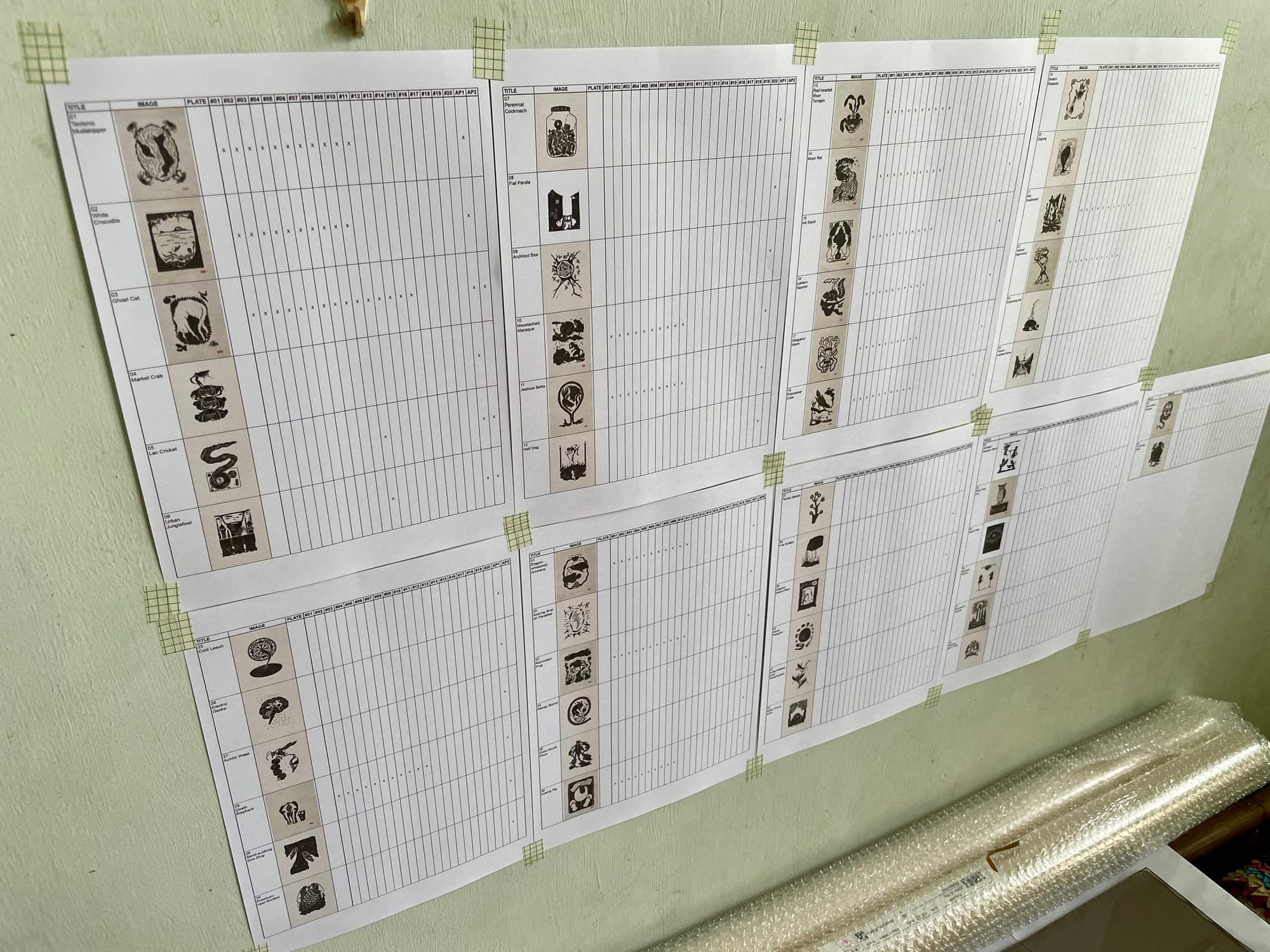 Studio update: my rolls of Kitakata paper arrived, along with a blessed measure of time and stability. That means I can finally finish printing the Creatures of Near Kingdoms linocuts, a series that began in 2016.