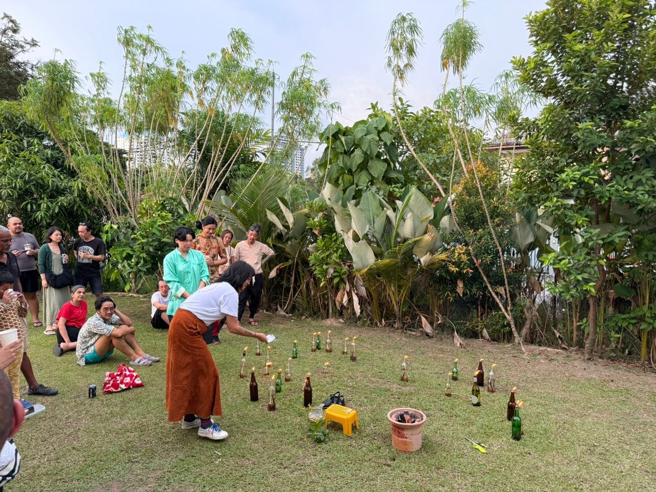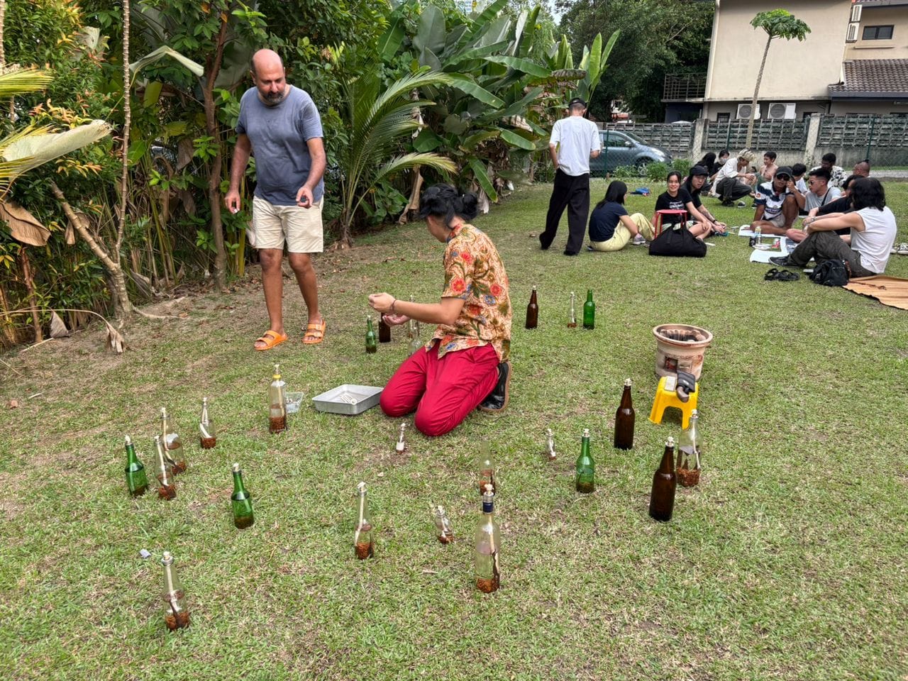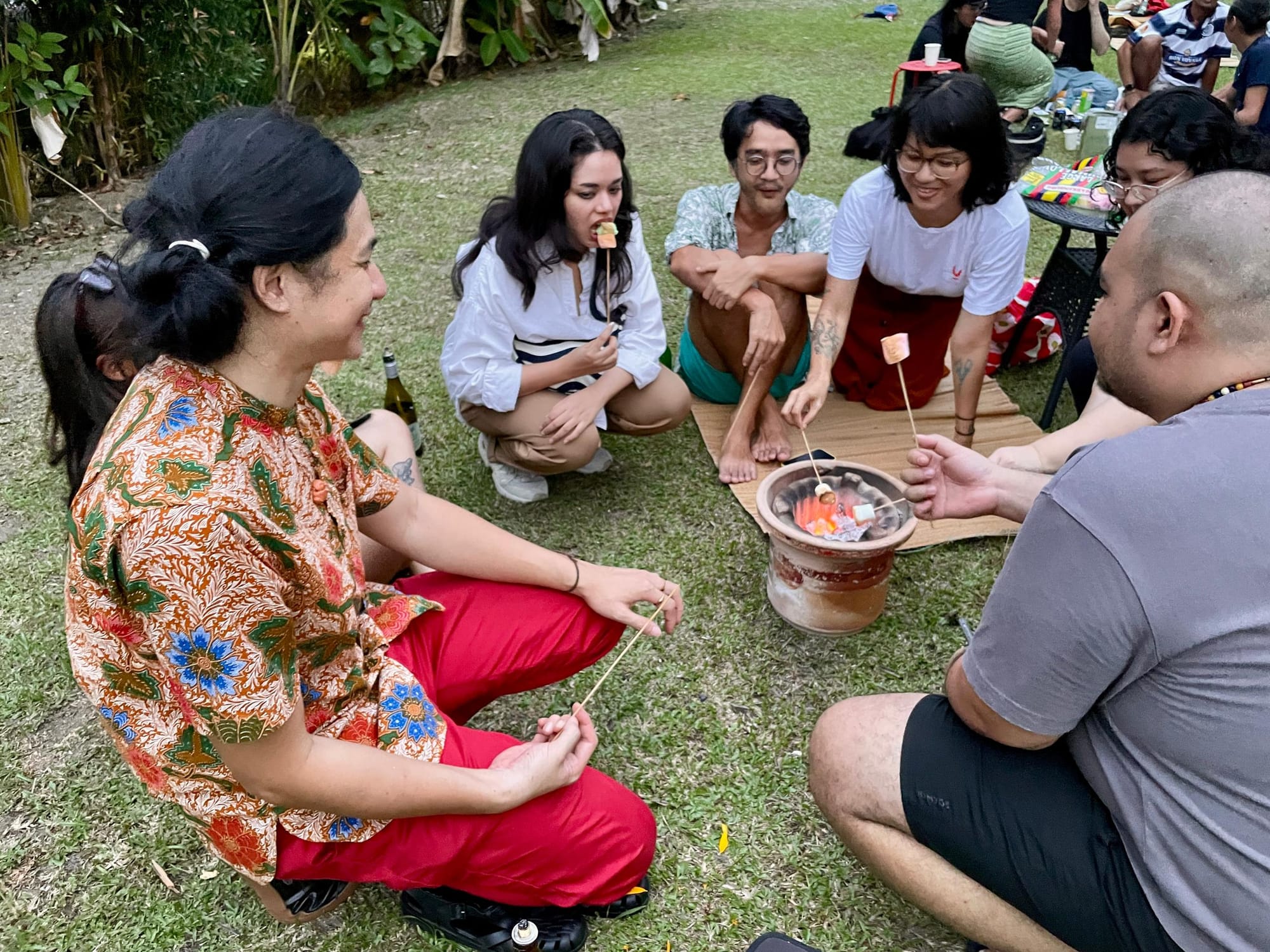 We lit a fire in the garden, and people burned pieces of paper written with things they needed to let go of. Transformation is hard. Sometimes a knife can make you feel stronger, so I sharpened my parang and asked people to carry it as they walked around the fire. Then we toasted marshmallows! It's kind of essential that these things are not so serious.