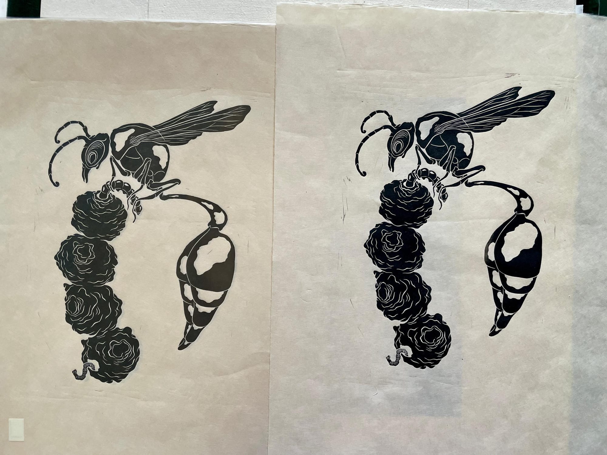 Finished printing the whole edition of "Urban Junglefowl" last week. Started printing "Auntie Wasp".